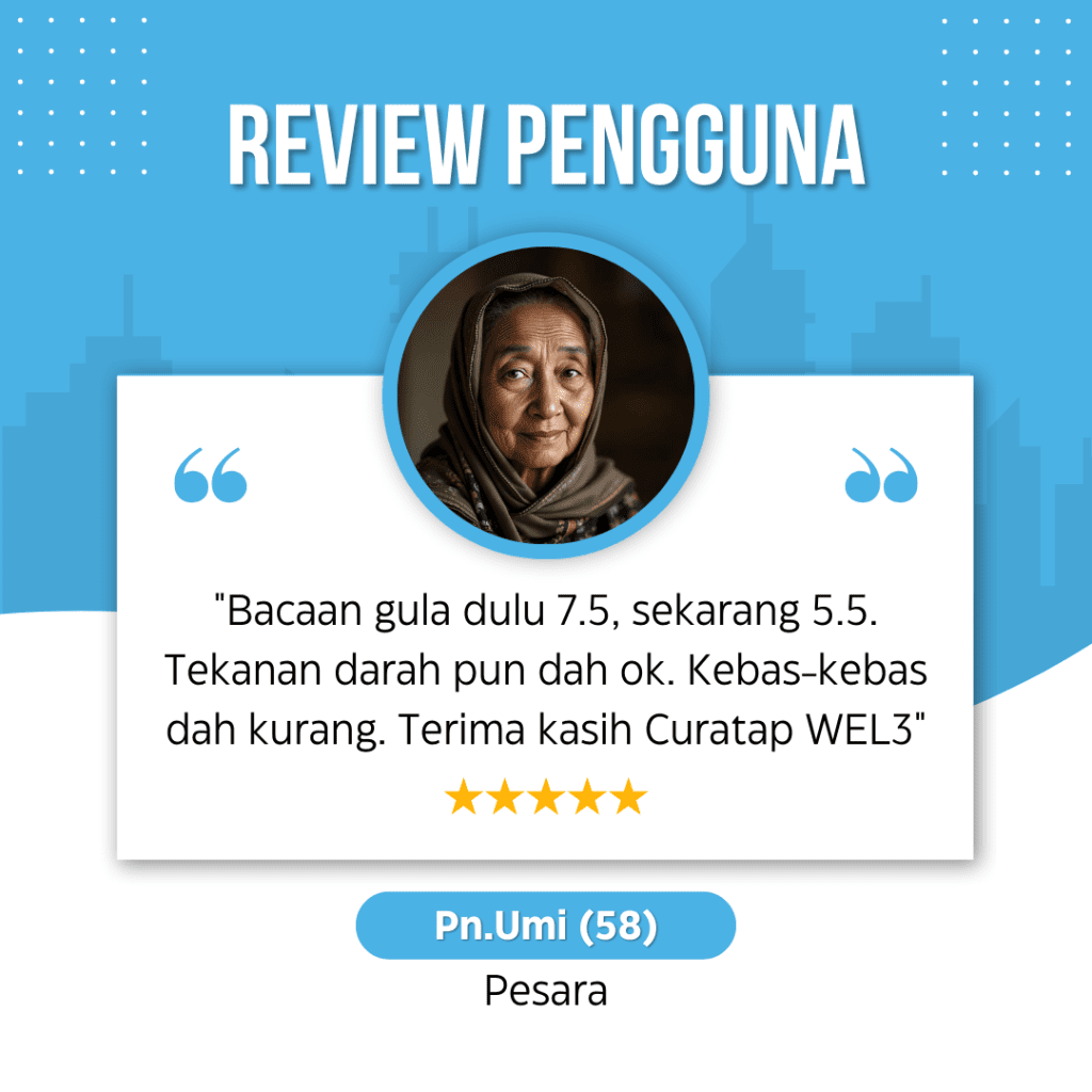 “Curatap WEL3 telah menjalani ujian makmal dan terbukti memberi kesan yang sangat tinggi dalam merencat dua enzim yang terlibat dalam pengawalan aras gula dalam darah selepas makan iaitu alpha-amylase dan alpha glucosidase.”